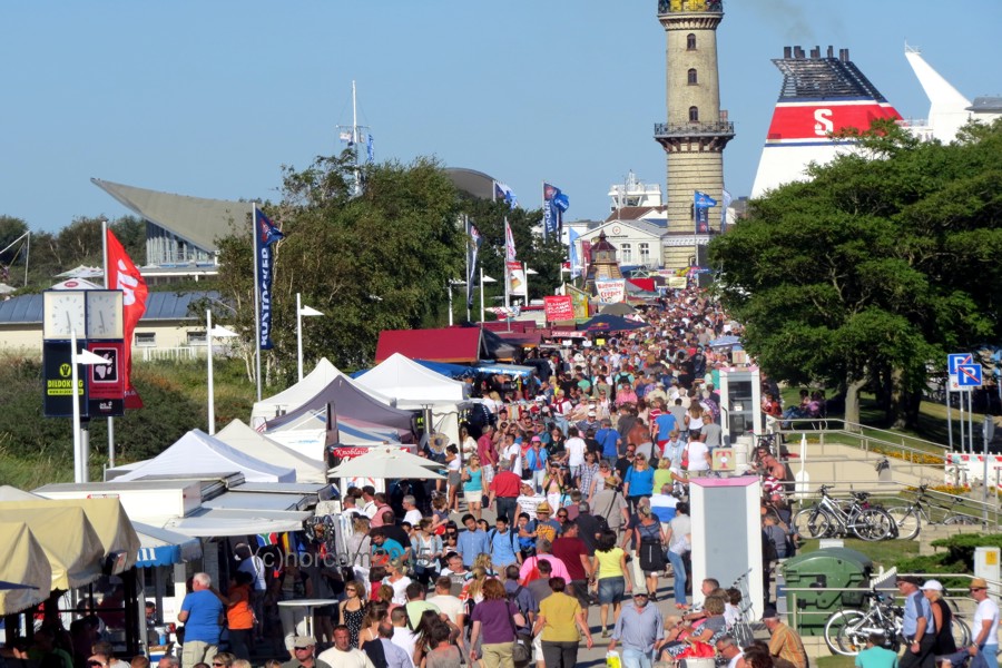 Zahlreiche Veranstaltungsprogramme und Bummelmeile am Alten Strom bis hin zum Leuchtturm mit vielen Verkaufsständen sorgen für Unterhaltung..